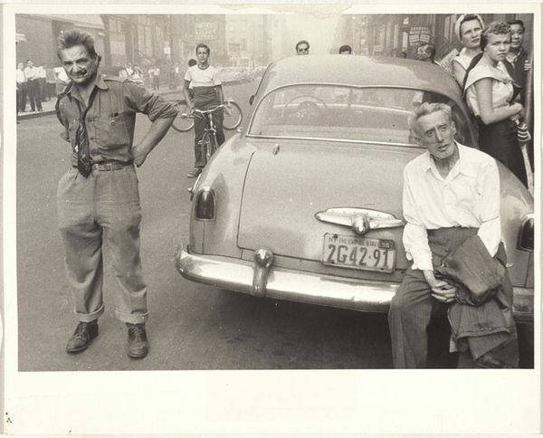 Robert Frank snapped this photo, Men with Cowboy Hats - Gallup, New Mexico, with a camera. It’s a photograph, so the process of making is all about the decisive moment, that little click. But it’s the greyscale that gets me. It's that range, from bright white to deep black, that captures the scene's mood. Look at how the light falls on the car, a perfect backdrop for these guys. And those cowboy hats? They're like dark halos, framing faces that are lost in thought. The guy on the left, gazing upward, cigarette in hand. It feels like a movie still, a moment suspended. The other one, holding a camera of his own, who's taking a picture of who? The composition’s got that signature Robert Frank grit, a little rough around the edges, but totally honest. Frank's photographs remind me a bit of Walker Evans' work. He’s not just showing us a scene, but inviting us to feel something, a slice of American life, with all its complexities and contradictions.