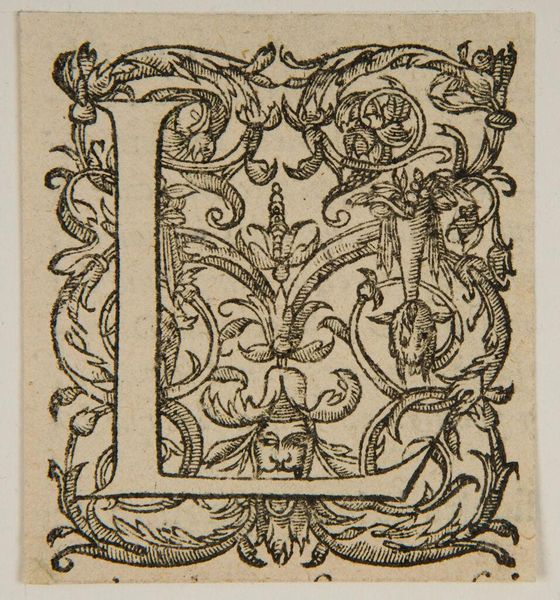 Editor: Here we have "Letter M," a print of unknown date by an anonymous artist. The intricate design is captivating. What do you see in this piece, considering its formal elements? Curator: The composition displays a remarkable balance between the geometric rigidity of the letterform and the organic fluidity of the surrounding ornamentation. Note how the artist employs contrasting textures. The smoothness of the letter opposes the intricacy of the floral and avian motifs. Editor: So the interplay between structure and detail is key? Curator: Precisely. The success lies in the tension between these elements, generating visual interest. I am left wondering about the meaning of the birds. Editor: This focus on form really opens up a new avenue of appreciation. Curator: Indeed. Formal analysis allows us to engage with the work on its own terms.