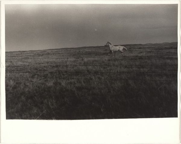 Editor: This is Joe Deal's "Missouri Plateau" from 2005, a gelatin-silver print. It's very still... almost mournful, wouldn't you say? All that sky bearing down. What do you make of it? Curator: It evokes a specific kind of American West, doesn’t it? Devoid of romanticism, this stark realism pulls us into a landscape scarred by exploitation and neglect. Think about the history of westward expansion, the forced displacement of indigenous peoples, and the environmental consequences of resource extraction. How do those histories inform your reading of this seemingly quiet scene? Editor: Well, seeing it that way makes the stillness seem less peaceful and more like an absence – like something’s been taken away. I guess the open landscape maybe masks environmental degradation. Curator: Precisely. Deal’s perspective encourages us to look beyond the picturesque. This wasn't untouched land, but territory marked by the imposition of human desires. Does the title, "Missouri Plateau", take on a different resonance now, acknowledging a geographical space entangled in socioeconomic history? Editor: Definitely. Before, I just saw a flat field, but now I can imagine that history etched into the land itself. Do you think that’s what Deal intended? Curator: I think he was aiming to show us the underbelly of the sublime, revealing how narratives of progress often conceal systemic inequalities. Editor: That's fascinating, I'll definitely remember that when considering other landscapes, both in art and reality. Thanks. Curator: Absolutely, let's continue questioning the visual language that has shaped our understanding of nature and space.