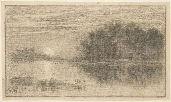 Curator: This is an untitled landscape by François Louis Thomas Francia, created in the early 19th century. The dimensions of the image are 189 by 245 millimeters. Editor: It has this heavy, almost melancholic feel, doesn't it? The tones are so muted, like a memory fading at the edges. Curator: Absolutely, and Francia, situated in a transformative period of art history, captures this emerging Romantic sensibility. The socio-political unrest of the time likely fueled such introspection, which is reflected in the art of the period. Editor: I see that, especially in the way the figures are almost consumed by the landscape. It speaks to feelings of displacement and the overwhelming power of nature over individual identity. Curator: Precisely. And the materiality of the print—the way the ink sits on the paper—amplifies the raw emotionality of the scene. It's a subtle commentary on the human condition within the context of a rapidly changing world. Editor: It’s a reminder of how landscapes can mirror our inner states, reflecting societal anxieties and personal turmoil through a deceptively simple image.