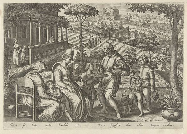 Curator: Jan Miense Molenaer's "The Proposal," likely created sometime between 1620 and 1668, offers us a glimpse into a Dutch Golden Age village scene. It's currently held in the Rijksmuseum. Editor: It strikes me as deceptively simple, at first glance. But then, the scene's almost unsettlingly staged – everyone so deliberately placed and so closely watching the couple. Curator: Indeed. Consider the symbolism inherent in their placement. The woman, isolated on a small mound, facing a sea of onlookers, embodies a critical juncture. Marriage was more than a personal choice then; it was a socio-economic pact. The landscape's inclusion reminds us of community and lineage at stake in marriage. Editor: Right. And if we look at it from a purely material perspective, this drawing is graphite, pen, and ink on paper, modest in materials yet potent in conveying this drama. Note the layered application of the pen and the hatching. Molenaer clearly knew his craft! The labor speaks to a burgeoning market for such genre scenes. Curator: Precisely. The composition guides our eye, the architecture grounding one side of the tableau, and the cluster of observing villagers framing the scene as one unfolds within a controlled social atmosphere, a world brimming with coded meaning. Their body language signifies the weight of social expectations in a choice made more through ritual than sentiment. Editor: The question then becomes, how accessible were these drawings? Was Molenaer catering to a burgeoning middle class eager to consume images reflecting their daily lives and social values? Curator: Doubtlessly. Through genre scenes, visual archetypes solidified cultural identity. But to truly engage with "The Proposal," it must also be considered in a historical, religious, or ethical context; it evokes broader societal narratives about women and power, about duty and tradition. It invites consideration beyond this frozen instant, demanding consideration of legacy. Editor: And also consideration of the marketplace, the very economic conditions which gave rise to both artist and image! It makes you wonder how those material conditions impacted even a ritual as seemingly "pure" as a marriage proposal. A fascinating dialogue! Curator: I concur. A modest work evoking powerful meanings and discussions of the life of art.