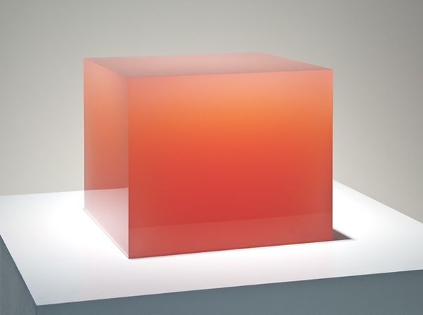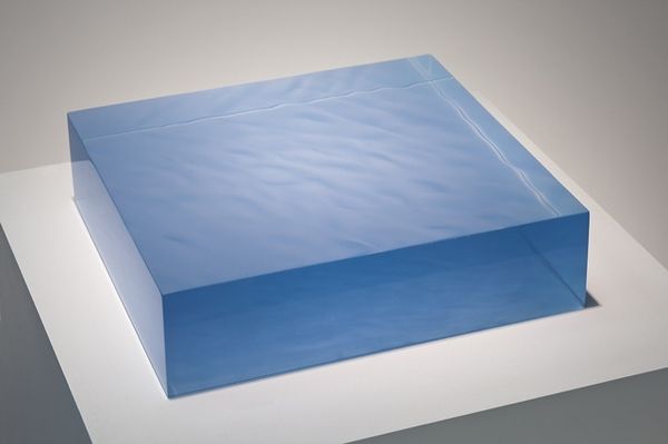 Peter Alexander’s "Green Violet Box" is like a solid block of light, or a color sample enlarged to the scale of sculpture. There's something about the way it captures and refracts light that makes it feel alive, almost breathing. It's hard to tell exactly how Alexander achieved this effect. The surface is so smooth and seamless, it's like the color has been poured into a mold and set to harden. Looking at the color, it shifts and changes depending on the light, from a deep, saturated violet to a lighter, almost translucent green. In the lower part of the sculpture you can see the different layers of colour sitting on top of one another, as though they've been built up gradually over time. It reminds me of the light works of Robert Irwin, in that both artists are interested in the perception of space and how light can transform our understanding of it. Ultimately, “Green Violet Box” is an artwork that invites contemplation and offers a space for imaginative exploration.