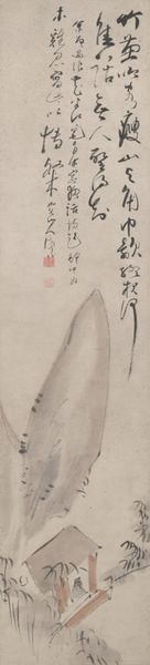 Curator: Looking at "Dead Waterbird" by Yamamoto Baiitsu, created sometime between 1800 and 1900 using ink on paper, I’m immediately struck by the fragility it conveys. Editor: Fragility, yes, but also something… vulnerable in its stillness. The drawing is spare, and there's a certain brutal honesty in its presentation of death. It really pulls focus to the materiality of existence, you know? Curator: Indeed. Consider the artist’s delicate strokes defining the feathers—notice how they create volume through tonal variation rather than explicit outlines. It's a marvelous example of implied form within negative space. Editor: For me, it's less about form and more about process. Baiitsu’s deliberate choice of ink on paper invites questions about availability and cost, which inevitably brings in conversations about craftsmanship during this era. Were such materials a luxury? What impact might these concerns have had on art making? Curator: A valid point, certainly. Yet consider also how ink lends itself perfectly to capturing nuanced shading, a sophisticated formal technique utilized in landscape drawing. Editor: And the paper itself is relevant. Was this sketch done on mass-produced paper, impacting artistic possibilities and challenging conventional distinctions? What's particularly striking here, in the way the legs just *end* – the paper quite visibly delimiting a violent finish. Curator: The unfinished quality only adds to the emotional impact. And I notice too the economy of line…so essential. Every stroke contributes to the overall composition. Editor: I think it underlines an exploration of production: to reflect on where this drawing lived culturally as object of artistry, challenging conceptions. Curator: Ultimately, for me, the aesthetic composition offers a refined view into artistic skill and form itself. Editor: But without context and materials, this remains inaccessible! What were people *doing* while Yamamoto was drawing, using and consuming? It really makes you question what’s left for birds that were not considered "objects of artistry.”