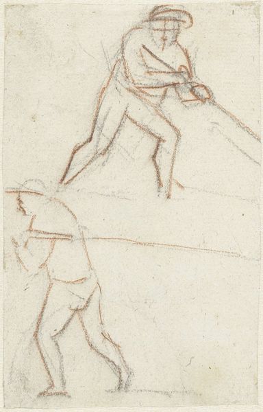 This sketch by Simon Andreas Krausz, rendered in pencil, depicts two studies of a hunter, capturing gestures of labor and transit. Note the rifle or tool each figure carries, a symbol of both provision and potential violence. This motif extends far back, echoing in the staffs of biblical figures like Moses, symbols of authority and divine purpose, or even further, to the clubs wielded by early depictions of Hercules, emblems of raw power and heroic struggle. Consider how the weight of the tool and the hunter's posture reflect a universal narrative of toil and survival, a theme deeply embedded in our collective memory. These figures engage us on a subconscious level, reminding us of humanity’s perennial dance between necessity and innovation. Observe how the hunter figure has persisted, evolving from a mere provider into a symbol laden with cultural and psychological weight, constantly reappearing in our collective consciousness.