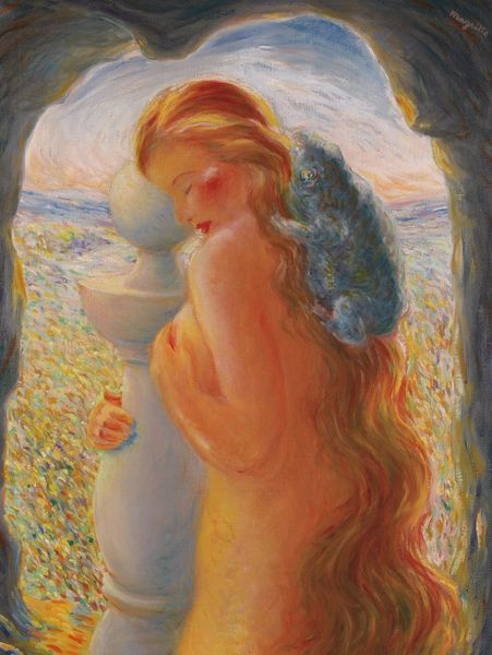Theo van Rysselberghe painted this 'Seated Nude' around 1905 with oil on canvas, using the Pointillist technique. The essence of Pointillism lies in its methodical application of tiny, distinct dots of pure color. Up close, you see only individual daubs. But as you step back, these points merge in your eye, creating a shimmering, luminous effect. This wasn't just a painting style; it was a scientific approach to art-making, championed by artists eager to embrace modern theories of optics and perception. Consider the labor involved in creating such a work. Each dot is a deliberate mark, a testament to the artist's patience and precision. Pointillism mirrors the industrial processes of the time, where repetitive tasks were the norm. It also resonates with the burgeoning consumer culture, where mass-produced goods were assembled from countless individual parts. Van Rysselberghe’s painting challenges the traditional hierarchy between artistic skill and industrial production. It elevates the status of the craftsman, recognizing the value of meticulous, repetitive labor in the creation of beauty.