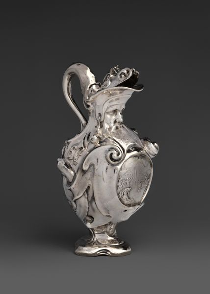 This Ewer, an undated masterpiece by Abraham Portal, shimmers here at the Metropolitan Museum of Art. Its silver form presents a fascinating study in structure and ornament, uniting the functional with the decorative. The ewer’s body, bulbous yet elegantly elongated, flows into a slender, ornate base, grounded by a circular foot. This shape achieves a harmonious balance through carefully considered proportions. The handle, scrolled and embellished, serves as a counterpoint to the smooth, reflective surface of the vessel itself. Notice how the light plays across the silver, accentuating the meticulous detail of the relief work. Portal’s ewer transcends mere utility, emerging as a statement of cultural and philosophical values. It's a testament to the integration of form and function, where the aesthetic enhances the practical, embodying a dialogue between visual delight and material purpose. Note, in closing, how each curve, ridge, and flourish contributes to a cohesive whole.