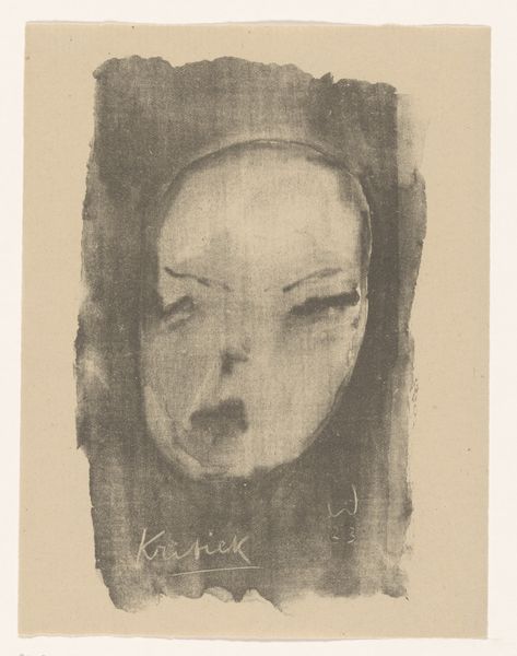 Editor: This is Léonor Fini's "Le Masque de la mort rouge," done in oil paint, although we don’t have a date. It's quite striking—a pink skull-like face emerging from a dark shroud against a blue background. What social commentary, or perhaps a more personal statement, do you see embedded in this piece? Curator: Considering Fini’s focus on female empowerment within a male-dominated Surrealist movement, and noting that this piece carries a title referencing Edgar Allan Poe's dark themes, could this painting be viewed as a critical response to the societal control of women and the psychological constraints it places upon them? Editor: I hadn’t considered Poe! So, is the "red death" symbolic of something imposed on women specifically? Curator: Perhaps. Or maybe "Le Masque de la mort rouge" serves as a critique of how art institutions and social structures frequently overlook or misinterpret the intensity and range of female artistic expression, ultimately "masking" its true depth and cultural significance? Do you perceive this as a personal reflection or a broader societal critique? Editor: It feels both, actually. Personal in its unsettling intimacy, yet the historical context of limited opportunity turns it into a shout against silencing female voices. Curator: Exactly! Her unsettling style forces the viewer to confront uncomfortable truths. It's not just about individual mortality but institutional mortality—how systems can stifle creativity and distort legacies. What did you take away from considering her process and historical moment? Editor: That art doesn't exist in a bubble! Examining these "vanitas" themes through the lens of cultural power structures adds so much meaning. Curator: Precisely! Looking closely reveals intricate patterns between artistic vision and socio-political influences, providing much richer meaning and fostering a more grounded understanding.