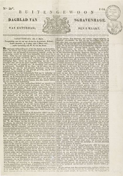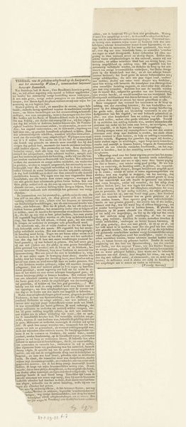 This text block, made by Salomon Savery in 1639, is a printed account of the Battle of the Downs, a naval engagement during the Eighty Years' War. The printmaking process itself is central to understanding its significance. Consider the labor involved: from the initial carving of the text onto a copper plate, to the repetitive work of inking and pressing each sheet. This was a skilled trade, but one increasingly geared toward mass production. The relatively small size of the print also speaks to its intended use as a portable and easily disseminated form of news. The stark black-and-white aesthetic, born of the engraving process, lends a sense of authority to the text. The dense columns of type leave little room for embellishment, emphasizing the factual nature of the account. Yet, the inclusion of decorative initials and a small, detailed depiction of the battle also reveal the printer's artistry. In essence, this printed text represents a confluence of craft, commerce, and politics, reflecting the rapidly changing social landscape of 17th-century Europe.
