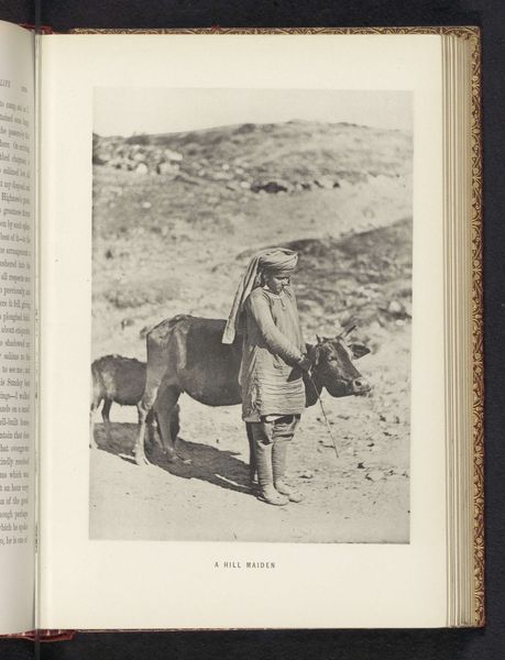 Editor: So, this is a print from before 1901 reproducing Jules Breton's painting of a woman carrying a basket on her head. It's incredibly evocative, isn’t it? Almost dreamlike, and yet grounded in everyday life. How do you interpret this work? Curator: The basket itself speaks volumes. Consider its shape – round, encompassing. A circle often symbolizes wholeness, eternity, the cyclical nature of life. And placed on her head, the very seat of thought, it’s as if she carries the weight of her world, her experiences, her cultural memory itself. Does that resonate with you? Editor: Yes, absolutely. It’s interesting how the image both glorifies and perhaps subtly critiques rural labor, all in this stoic pose. Curator: Indeed. Look closer at the landscape surrounding her. The river, the distant hills. Water often symbolizes purification, transformation. Hills represent challenges, ascensions. Jules Breton, like many academic and realist artists of his time, was invested in communicating stories of labor and ordinary life with certain heroic undertones. Can you find more clues? Editor: Well, her upward gaze, in relation to the landscape as a background might convey this constant strive. The water, too, creates a boundary of some sort, but it also brings a constant resource to the field, so, it adds a symbolic depth to it. Curator: Precisely. These details carry meaning, hinting at continuity, the enduring relationship between the woman and her land. Even today, images like this resonate because they tap into something timeless in the human experience, isn’t it? Editor: I hadn’t thought about it that way, as part of an ongoing visual dialogue. It's incredible to consider how images continue to communicate and evolve through time. Curator: I concur; looking at the symbolic resonance illuminates these complex interplays.