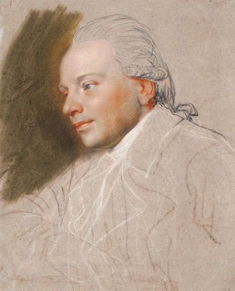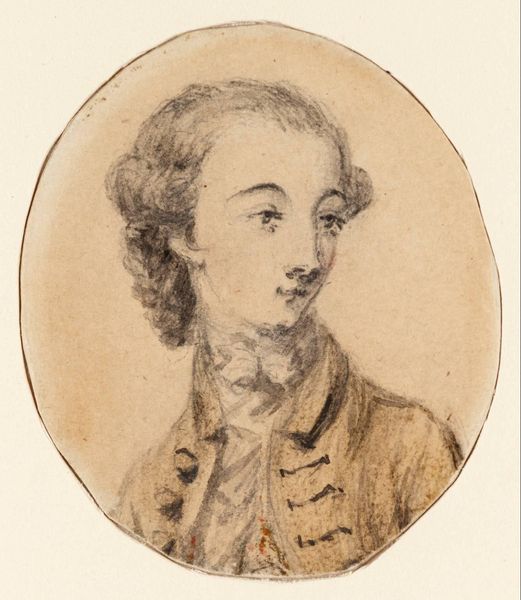 Curator: Immediately striking is the contrast; a vibrant youth rendered in seemingly subdued and quite economic strokes of pencil. Editor: Absolutely, it’s intriguing how Nattier, believed to be the artist, captured a sense of opulence and aristocracy with such simple materials—dry-media, probably mostly pencil—and minimal color. You can practically feel the texture of the paper, the give and take of the graphite. Curator: And it's more than mere material; it suggests status, power, but also fragility, wouldn't you agree? Note his averted gaze. The lack of intense detailing almost alludes to a fleeting impression of a young aristocrat of the eighteenth century. I see it as a peek into the social complexities and pressures of the time. Editor: Perhaps. But I’m more captivated by the *making* of it. Think of the labor implied! The layered hatching creates a volume, and hints at rich garments, constructed just so through painstaking manual labor and application. Look closely at the sleeve's folds, for instance. They speak volumes about production and consumption in pre-revolutionary France. Curator: A poignant detail indeed, leading me back to considering how Nattier was clearly very adept at translating social identities into accessible symbolic portraits. Through the choice of angle, the hint of fine attire, or simply his youthful face, viewers from the time and us today are still granted insight into class and status. Editor: So true. Ultimately, what remains are tangible documents of both skill and social life. The materials whisper their stories of origin, trade, labor. What began as an elite depiction evolves into a very revealing cultural artefact. Curator: Beautifully put! A single image speaks volumes of culture, politics, and of course art history. Editor: Exactly—art in its historical, material reality. Fascinating!