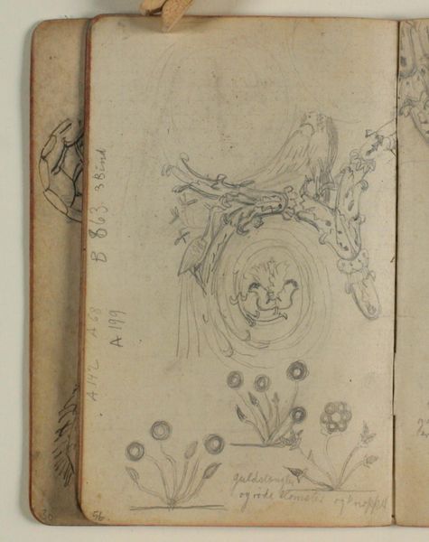 Curator: We’re looking at “Plantestudier,” or "Plant Studies," by Niels Larsen Stevns, created sometime between 1906 and 1910. It's currently housed here at the SMK, Statens Museum for Kunst. The piece is a sketchbook page filled with pencil and colored-pencil drawings of plants. Editor: My immediate impression is of something quite delicate, almost tentative. The light pencil work on aged paper gives it a feeling of ephemeral beauty, like capturing a fleeting moment in nature. Curator: Indeed. Stevns was working within a tradition of naturalism, aiming to depict the natural world as accurately as possible. Sketchbooks like this were common tools for artists to study nature firsthand, recording observations for later studio work. The sketches give us insight into his methodology. Editor: I’m struck by the contrast between the precisely rendered outlines of the blossoms and the more suggestive, fainter impressions of plant forms beneath. The composition uses the negative space quite cleverly, allowing the eye to complete the shapes. What do you think that choice brings to the piece? Curator: I would say that these studies, these glimpses, are crucial for understanding Stevns' creative process, in this period, when art began moving out of academic style. These are not finished works for public consumption but are rather studies used for learning the basic tenets of Naturalism to push art forward. It suggests a democratizing approach. Editor: So, it's less about polished presentation and more about functional record-keeping, or a form of private note taking? This raw and unfinished quality lends the drawing an almost accidental aesthetic appeal. The page feels very open. Curator: Precisely. And thinking about where this piece now lives, how is it recontextualized in this gallery space, as opposed to simply existing as a page in an artist’s personal sketchbook? Editor: Interesting how moving this sketch to a museum context has transformed its reception. It compels viewers to focus less on perfection and more on the intimate, unfolding story of observation, an ephemeral study brought into the light. Curator: Absolutely, something initially private and utilitarian becomes available to public view and scholarship. Editor: Looking at this I feel both nature's beauty and Stevns’ artistic discipline keenly observed. Curator: And for me, considering Stevns' legacy alongside evolving attitudes to nature at the turn of the 20th century brings historical depth and allows us to appreciate art in context.