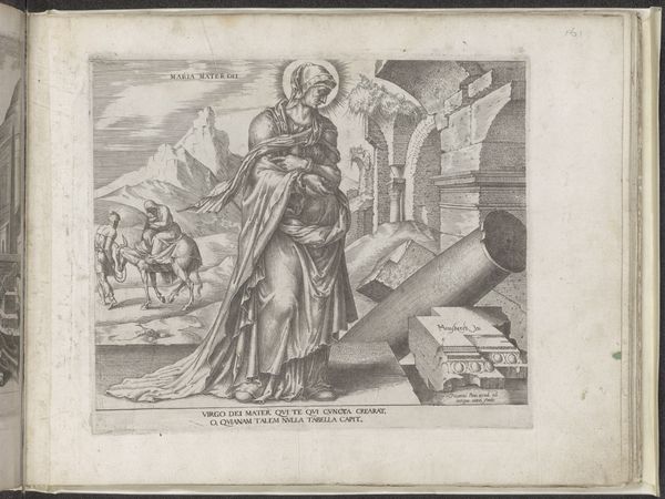 Curator: This print, made around 1560, is called "Intelligentia" by Cornelis Cort. Look at the sharp contrast! It strikes me immediately. What does it spark in you? Editor: The figure certainly has an ethereal quality. Is that drapery almost cloud-like, melding into the background? The atmosphere feels, simultaneously, both grounded and floating. But "Intelligence?" That seems like quite an assumption on Cort's part, to tie such a grand idea to this, this somewhat rigid scene. Curator: It's the orb, isn’t it? She's holding the world in her hand! It’s not about assumption; it's about aspiration. A dream of comprehension. And isn't there a certain grace in her pose, even a bit of longing in her face as if true understanding is always just beyond reach? Editor: Perhaps. Although, from a critical perspective, what does it signify when 'Intelligence' is consistently portrayed as a white, often Grecian-robed, figure? It reflects a historical privileging of certain demographics within the intellectual sphere. The print reinforces established power dynamics of who gets to define "Intelligence" and whose knowledge is deemed valuable. Curator: It is interesting to view her as part of her cultural context and what this meant to the Europeans of the time. Looking closer, she seems less sure of her intelligence. A shadow passes over her face and that of her feline familiar. In our eagerness to classify her by skin, dress, culture, do we project a definition that's incomplete? And why the wild tree bursting up behind her when cultivated landscaping was all the rage? Cort challenges our perspective of intelligence by drawing connections with instinct. He encourages us to re-consider and expand what we see as the root of intellect and reason. Editor: A more comprehensive, inclusive notion of "Intelligence"…I think that’s certainly something worth striving for as we observe her. And by questioning traditional representations and delving into historical contexts, we can start to move beyond the limitations they impose on our own understanding. Curator: Exactly, Cort’s art encourages us to stay curious and actively seek our understanding—true "intelligentia," if you will—by seeing beyond a world and its people trapped in spheres of power.