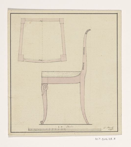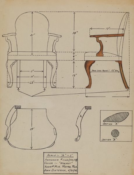 Editor: Here we have a delicate drawing entitled "Doll Chair," created around 1936, using pencil on paper. There’s a blueprint quality to it that I find charmingly utilitarian. How do you interpret this piece? Curator: It strikes me as an act of quiet resistance. This "Doll Chair," seemingly so small, speaks volumes about the societal roles prescribed to women in the 1930s. Do you see how this sketch, likely deemed unimportant, might represent a woman carving out a space for creativity within domestic constraints? Editor: I hadn't thought about it that way, but I see what you mean. It's almost like building a world in miniature, a subtle rebellion through design. So the act of drawing it is key? Curator: Absolutely. Consider the historical context. The 1930s were a period of economic hardship and shifting gender roles. While women were gaining more independence, they were still largely confined to the domestic sphere. This chair, seemingly insignificant, becomes a symbol of women's ingenuity and resourcefulness within those limitations. What kind of dialogue do you think that opens to our era of mass consumerism? Editor: So, even a simple sketch of a doll chair becomes a statement about the power of creation in a world trying to box people in. That’s fascinating. I never would have looked at it that way. Curator: Art has a unique voice. Now, imagine the conversations this object could spark around gender, labor, and design in today's context. Editor: It definitely gives me a lot to think about. Thanks!