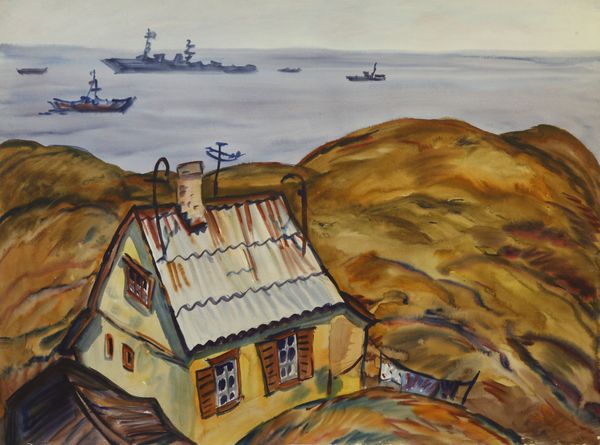 Dimitris Mytaras painted "On High Seas" with dynamic brushstrokes of acrylic on canvas, capturing a vivid scene of maritime struggle. Mytaras's bold application of paint shapes the tumultuous waves and the weathered ship. The heavy impasto conveys the density of the water and the roughness of the ship’s hull, while the contrast between the deep blues and the ship's faded red suggests a vessel worn by time and tide. The visible brushwork gives the painting an immediacy, as if Mytaras painted it en plein air, battling the elements himself. The painting reflects the labor inherent in seafaring and trade; the ship is a symbol of human endeavor, pushing against nature's forces. Mytaras elevates the subject through his expressive handling of the paint, reminding us that art, like labor, transforms raw materials into something meaningful. This approach blurs the lines between the act of painting and the act of working.