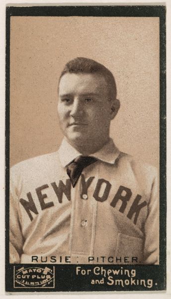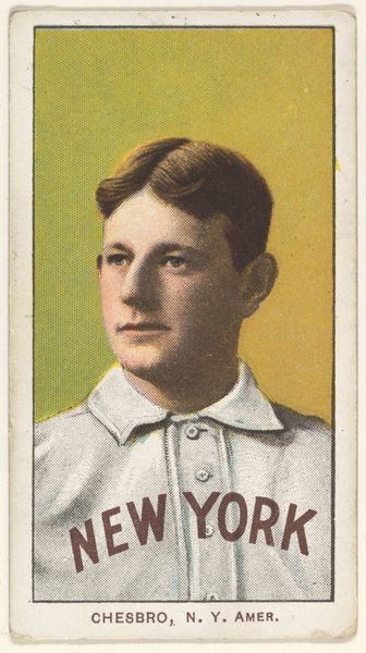 This baseball card was produced by the American Tobacco Company, part of their White Border series. It's kind of cool to think about these mass-produced images, normally you wouldn't think about them in a museum, but here it is! It's an interesting idea to consider art as a process. What strikes me is the way it feels both precise and a little bit off, kind of like when you're trying to remember someone's face. The colors are muted, almost like a faded photograph, but then the blue background pops, creating this strange tension. Look at the way the text "NEW YORK" is rendered. It’s slightly smudged, giving it a kind of immediacy, as if it were painted on the shirt in real time. This card reminds me of those old Weegee photographs from the 40s, gritty and real, but with a touch of glamour, they are worlds away but strangely connected. It's about capturing a moment, but also about the limitations of representation, what we choose to remember and what fades away.
