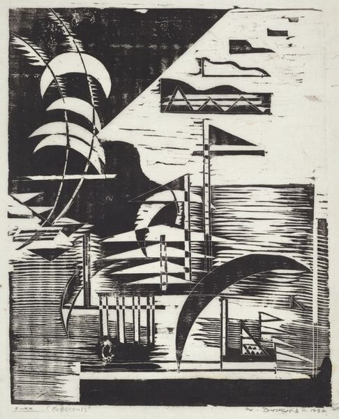 This stark woodcut by Antonio Frasconi captures the Fulton Fish Market, a place teeming with commerce and labor. Above the bustle, notice the abstract mass of ladders and scaffolding. Ladders, as symbols, have long been associated with ascent, progress, and connection between different realms. Think of Jacob's Ladder in the Bible, a pathway between Heaven and Earth. But here, repeated and fractured, they suggest not divine access but the chaotic structure of human enterprise. Consider the Tower of Babel: a symbol of human ambition reaching too far. The ladders, in their disordered state, could evoke a similar sense of striving without clear direction, a collective unconscious anxiety about unchecked industrial growth. This anxiety resurfaces throughout history, from medieval allegories to modern anxieties about technology, reminding us that every step forward is also a precarious climb.