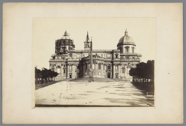 Editor: This is William Henry Fox Talbot's "Entrance Gateway, Queen's College, Oxford," created between 1843 and 1845. It's a beautiful, sepia-toned photograph, possibly a daguerreotype, of an elaborate archway. The geometry of the architecture is fascinating, how does one decode this visually? Curator: Indeed. Let us observe how Talbot harnesses the tonal range to articulate the architectural forms. The high contrast areas define the edges and delineate the geometric patterns, note the play of light and shadow, which enhances the sculptural relief. Consider the composition: how does the central placement of the gateway affect your perception of depth and scale? Editor: The symmetry is really striking! The gateway dominates the frame, emphasizing its grandeur, though I can still see depth due to the slight blur in the background, hinting at other buildings. Do you think he was also interested in showcasing the texture of the stone? Curator: Precisely. The rough texture of the stone, meticulously rendered, juxtaposes elegantly against the smoother surfaces. Semiotically, this tension could signify the endurance of the architecture versus its evolving nature. Talbot is emphasizing the intrinsic properties of his subjects through an almost scientific focus on light, texture and shape. Editor: I see your point about the contrasts creating that tension and directing your eye. Is this sharp detail typical of photography from this time period, though? It feels unusual. Curator: Talbot was truly innovative in exploring photography’s inherent capacity to capture details. This print also manifests a high level of control, suggesting deliberate choices in aperture and focus that create these textural variations. The sharpness isn't simply technical; it's aesthetic, guiding our interpretation. What have you learned, would you say, through our deconstruction? Editor: I think I am understanding how the medium itself became part of the message – how he composed the frame with that incredible sensitivity toward shapes, and contrast – it almost becomes an abstract study. Curator: Very astute observation. Every photograph presents its unique universe for decipherment. Thank you.