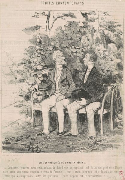Editor: This ink drawing on paper, made in 1863 by Wilhelm Marstrand, is titled "Ewald in Rungsted in a Summerhouse with a View of Hven, Visited by his Cruel Mother." It gives me a slightly claustrophobic feeling, despite the open view. What do you see in this piece, especially concerning its depiction of family and society? Curator: I see a loaded encounter, one steeped in the societal expectations and the stifling roles often imposed, particularly on men by their mothers in the 19th century. The drawing encapsulates the tension between personal freedom and familial duty. The mother’s upright posture and stern gaze contrasts starkly with the son's slumped posture, illustrating power dynamics. This work, read through a feminist lens, highlights how societal structures restricted individual expression and perpetuated generational trauma. What is the effect of the light in this depiction? Editor: The light seems to be primarily focused on the mother's face, drawing attention to her severe expression. Maybe implying judgement? Curator: Exactly! This strategic use of light directs us to consider how patriarchal narratives historically centered the maternal figure as a moral compass, often silencing the experiences of the individual. This invites discussion about the historical context of gender roles. How do you think that contributes to interpreting his "cruel" mother? Editor: It is true. She seems to fulfill a stereotype. I hadn’t considered it in such a contextual way before! Thank you! Curator: It’s crucial to remember how artworks reflect, reinforce, and sometimes resist the norms of their time, especially as we continue to grapple with similar themes today. Editor: This dialogue gave me an enriched perspective! It makes me eager to explore more art pieces with a more critical understanding of society and historical contexts.