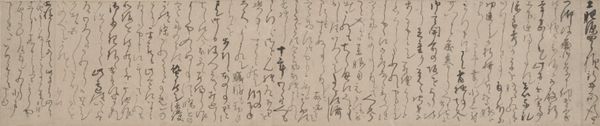Curator: This piece is called "Letter of the Eighth Month," an ink on paper drawing from the 18th century, created by Yamada Zeigan. I wonder what strikes you first about it? Editor: Hmm, it’s like looking at a ghost, barely-there yet filled with intent. The way the ink bleeds into the paper, it’s fragile but somehow powerful. It feels… personal. Curator: Definitely. Calligraphy, especially in Asian traditions, carries such a weight of emotion and intellect. This letter isn’t just words; it's a captured breath, a moment frozen in ink. I see the cultural influence deeply rooted in Asian art reflected in this piece. Editor: Right, and think about the act of writing itself then. It’s from the eighteenth century, when literacy wasn’t as universal as today. To pen a letter was a conscious and possibly subversive act, claiming power through communication. What are the stakes here? Is it personal? Is it political? Curator: That’s the exciting mystery, isn't it? It’s titled "Letter of the Eighth Month," so one naturally asks about the sender, the receiver, the unseeable drama that exists behind its composition, and whether or not the season had an impact on its emotional tone. Editor: Yes! Especially if this letter, as fragile as it looks, holds declarations or confidences. Was it even sent, or did it become an artful exercise? Look at the controlled chaos, a mirror perhaps, reflecting both intention and feeling. It asks us to consider, who is allowed to speak? Whose stories are considered worthy? Curator: I think that in this case, the beauty and strength comes from it having a sense of unknowability, but also, accessibility through just viewing the brush strokes themselves. Editor: Perhaps that’s where the activist spirit meets art—challenging structures, finding voices where they are muted. Art making allows for an interaction with communication and reflection, it transcends a barrier of language, or the barrier of the 18th century into a more present context. This small, unassuming letter actually makes me feel like there’s a grand story inside it somewhere. Curator: Exactly, this delicate artwork is also a sturdy, communicative symbol of our creative potential. Editor: Yes, a reminder of the power in seemingly quiet acts.
