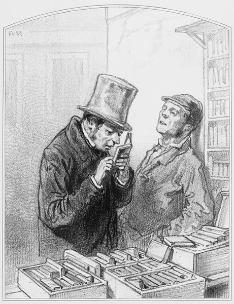 John Leech created this ink drawing, entitled "Highly Accommodating", sometime in the mid-19th century. The drawing captures a scene inside what appears to be a public conveyance, likely a train carriage. A well-dressed gentleman is stretching out, taking up the space of two passengers. The title suggests he’s being less than considerate. Leech was a prominent caricaturist for *Punch* magazine in England, a publication that often critiqued Victorian society. The drawing is a commentary on class and social behavior. The man’s attire signifies wealth, contrasting perhaps with the working-class passengers behind him. This image creates meaning through exaggeration and satire, reflecting the social tensions and inequalities prevalent in Victorian England. Historians of art and culture might explore Victorian periodicals and conduct archival research into the artist and his work to gain a more nuanced understanding of the piece.