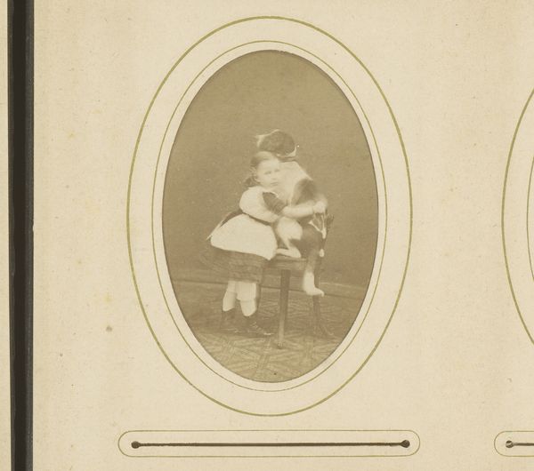 This photograph by E. Linde presents two children amidst the setting for a bath, framed within an oval border. The photograph is a study in contrasts, with the smooth skin of the children set against the textured drapes and patterned floor. The composition invites us to consider the interplay between innocence and domesticity. The simple, almost classical arrangement of figures, combined with the textured background, suggests a deeper engagement with ideas of representation and social roles. The act of one child bathing another introduces a dynamic of care and responsibility, presented here with a formal balance that evokes both intimacy and detachment. Ultimately, this work captures a moment of everyday life, elevated through the formal qualities of light, texture, and composition. The contrast between the children and their surroundings creates a tension that destabilizes the simplicity of the scene, inviting ongoing interpretation.