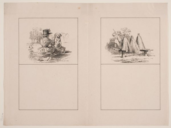 Charles Louis Mozin created this print, Verschillende schetsen over het schippersleven, using etching techniques. Its title translates to ‘Various Sketches of Shipping Life’. The image shows how maritime culture helped shape the social life of the Netherlands. We see quayside markets and shipyards teeming with tradespeople, and can consider this work within a history of Dutch maritime painting, a tradition that dates back to the 17th century, when the Netherlands was a world power in maritime trade. This print reflects the continuing importance of that industry. The style and content, with its scenes of daily life, suggests an affinity with realist and impressionist art. To fully understand Mozin's influences, we might delve into the archives of art academies or exhibition reviews from that time. This kind of research helps us understand art’s meaning as something deeply rooted in its historical moment.
