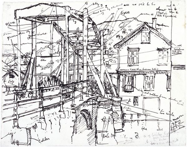 Alfred Freddy Krupa made this drawing of an old yard with gangway in Karlovac, Croatia in 1994, using ink on paper. Look at how Krupa uses these fine, dark lines to suggest the forms of the buildings, almost like a quick sketch, capturing the essence of the scene. The drawing has a raw, immediate quality. The ink is applied with varying pressure, creating lines that are sometimes bold and assertive, sometimes delicate and tentative. Notice the way the lines intersect and overlap, creating a sense of depth and complexity. It's as if the artist is mapping out the architecture, exploring the relationships between different elements. The lines feel urgent. See how they converge to create the image of a lived space? This work reminds me of Giacometti’s drawings. Both artists share an interest in capturing the essential structure of things through a web of lines. It’s not about perfect representation but more about the experience of seeing. And isn't that what art’s all about?
