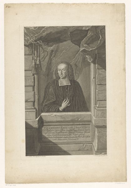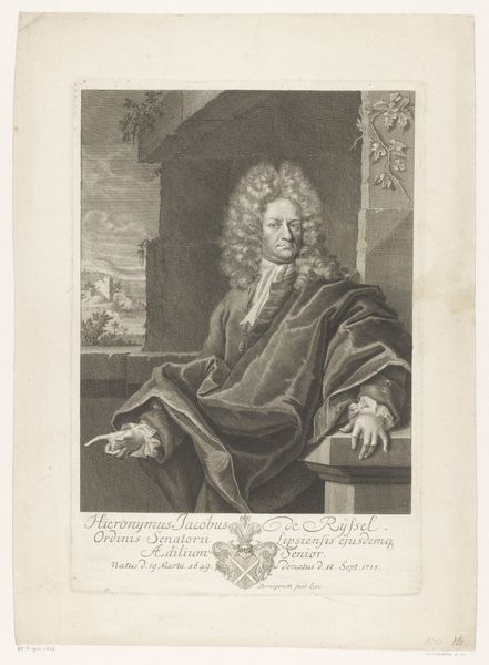 This engraving of Johann Michael Heineccius was created by Martin Bernigeroth in the early 18th century. During this period, portraiture served not only to capture likeness but also to communicate social standing and intellectual prowess. Notice Heineccius's elaborate wig and formal attire. These details speak volumes about his status and the societal expectations of men in positions of power. The backdrop, filled with books, suggests an environment of learning and scholarship, further enhancing the subject's intellectual persona. The curtain could represent his access to knowledge and power. As we contemplate this image, it's worth considering how much of identity is performance, and what aspects of ourselves we choose to display to the world. How much of Heineccius's identity is intrinsic, and how much is carefully constructed through symbols of status and learning? This engraving invites us to consider the complex interplay between identity, performance, and societal expectations.