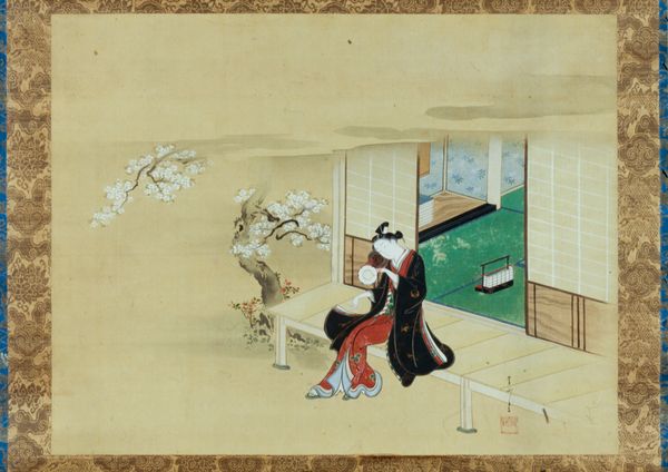 "Evening Faces" from The Tale of Genji, was painted by Kawamata Tsunemasa in the eighteenth century. It presents a poignant moment from the classic Japanese literature. The scene captures a meeting between Genji, and two women. The woman on the left is sumptuously dressed, holding flowers. The other woman, by contrast, is dressed in darker robes, her posture conveying a sense of reserve. The contrast in their attire reflects their social status and emotional states. It also speaks volumes about the complex relationships within the aristocratic circles of Heian-era Japan. Tsunemasa draws from the narrative to explore themes of identity, desire, and societal expectations imposed on women. Through the artist's sensitive portrayal, we glimpse into the emotional landscape of individuals navigating the intricate web of love and status. The Tale of Genji, and this painting, resonate as they reflect enduring aspects of the human experience.