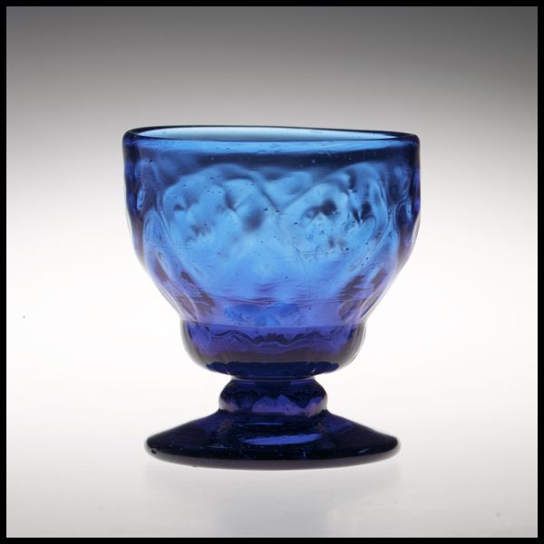 Editor: This is an 18th-century salt cellar. Made, rather exquisitely, out of glass, and currently residing here at the Minneapolis Institute of Art. The colour, that striking purple, is quite enchanting, isn't it? What secrets do you think this object holds, being from so long ago? Curator: Well, just imagine a time when salt wasn't as readily available as it is today. Something so small and elegant holding something so precious... it makes you think, doesn't it? Back then, a salt cellar like this wasn't just functional; it was a symbol. Perhaps a status symbol, even. Do you notice the colour, and how it deepens at the stem? Editor: I do! It almost fades from a royal blue to something nearly black, giving it depth. Curator: Exactly! It gives me the sense that it was carefully considered; the colours enhance its elegance and importance, elevating an everyday item to something quite special. It whispers stories of grand dining tables and perhaps, flickering candlelight reflecting in that gorgeous glass. It makes one wonder about the hands that crafted it and the lives that it graced, doesn’t it? Did you ever imagine a salt cellar having such profound undertones? Editor: I never thought of it that way before, actually! It really makes me think about how even simple objects can carry so much cultural meaning and historical significance. Thank you! Curator: And thank you. It’s in sharing thoughts that art really breathes. It is something that has taught me to really treasure each little piece around me!