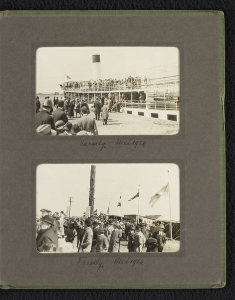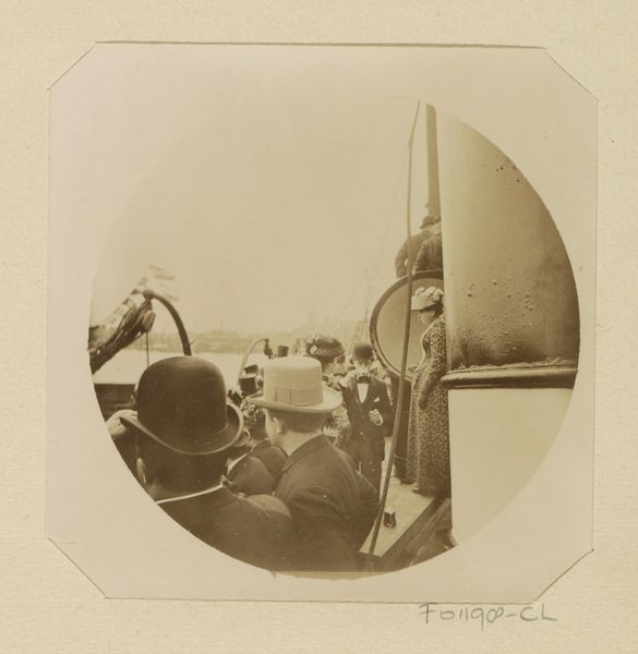 Editor: Here we have Johanna Margaretha Piek’s "Menigte langs het IJ tijdens de Keizersfeesten in Amsterdam," taken in 1891. It’s a gelatin silver print. It has a misty, dreamlike quality, almost like an impressionistic painting, but it captures a crowd along the water. What social dynamics do you observe in this piece? Curator: It’s a fascinating glimpse into Amsterdam at that time, isn’t it? Notice how Piek positions the viewer – almost as if we are also part of this gathering, perhaps on a boat alongside them. What strikes me is the explicit nature of this public spectacle, Keizersfeesten or Emperor's Celebrations; these events reinforced loyalty and national pride. But looking closely, one wonders, who are these people gathered? Are they truly celebratory participants, or are some merely onlookers, their presence a result of social pressure? Editor: I see what you mean. It is easy to see them just celebrating, but, yes, not everyone seems engaged. Their umbrellas up suggest a somewhat somber mood or an overcast day… Curator: Exactly. Consider the role photography played then; it was becoming increasingly accessible. Piek's choice to document this event contributes to a visual record of the era. It offers a carefully framed perspective of national identity. Do you think this perspective aligns with, or perhaps subtly challenges, the dominant narratives of the time? Editor: I hadn't thought of it that way. Perhaps there’s an undercurrent of observation, even critique. So, Piek’s work shows us not just an event but also the social complexities inherent within it. Curator: Precisely! The power of art lies in its ability to unveil those layers, prompting us to question the accepted stories and understand the deeper currents shaping society. Editor: This photograph definitely offers more to consider than a simple celebration. Thank you for the added perspective. Curator: My pleasure! It’s rewarding to view art through different lenses and examine its socio-political echoes.