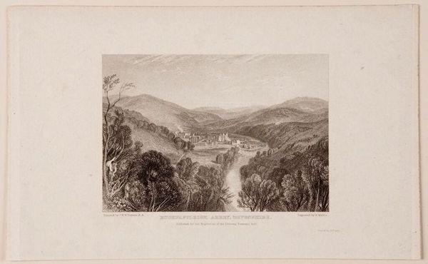 Editor: This is Albert Christoph Dies' "A piè del monte Catillo," housed at the Harvard Art Museums. It's wonderfully detailed, almost dreamlike. What leaps out at you when you look at it? Curator: It whispers of a romantic longing for simpler times, doesn't it? The flowing water, the craggy rocks...it’s a carefully constructed scene, almost theatrical. What do you suppose he wanted us to feel? Editor: A sense of peace, perhaps? Though there's a touch of melancholy too. Curator: Maybe it’s the black and white medium. It adds a layer of distance, a sense of looking back. Editor: I see that. It’s as if we're observing a memory. Thanks, that helped me to see the picture in a whole new light! Curator: And thanks to you, I feel as though I’ve rediscovered it myself.