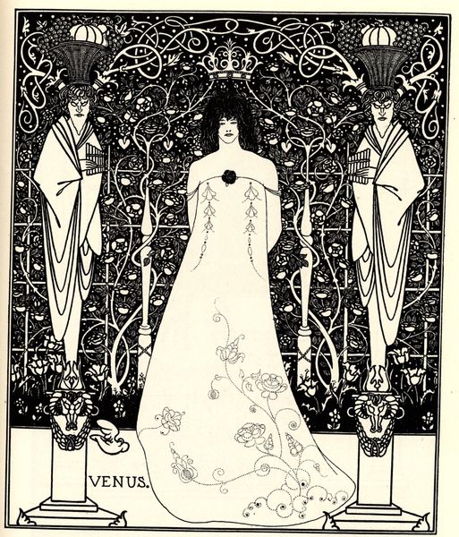 Aubrey Beardsley made this drawing, "The Lady with the Monkey," using pen and ink, a process allowing for stark contrasts and intricate details. The sweeping lines and dense patterns across the lady’s elaborate gown evoke a sense of luxury, sharply rendered in black and white. Look closely and you’ll notice the labor-intensive quality of the image. Beardsley wasn't just creating a picture; he was simulating the effect of textiles and ornamentation, all through the careful application of ink. The monkey in livery, offering a crown, adds a layer of social commentary – hinting at class structures and perhaps a satirical view of the era’s opulence. Beardsley masterfully blurred the lines between fine art illustration and the detailed craft of printmaking. By engaging with subjects of social commentary, Beardsley elevates what might have been seen as mere illustration into a potent observation of Victorian society.