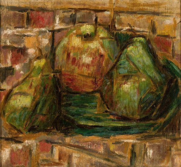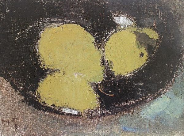 Forrest Bess made this still life of green apples and pears in 1948, and the first thing I notice is its bright, clashing colors and almost clumsy brushwork, like a kid who's just discovered the joy of smearing paint around. You can almost feel Bess wrestling with the paint, trying to get it just right. Looking closer, you can see the textures. The yellow background looks like it was applied with a palette knife, thick and uneven, while the fruit has softer, more blended strokes. See that little dab of red in the top left corner? It's like a spark, adding a jolt of energy to the composition. It's as though Bess is saying, "Here, look at these everyday objects, but see them in a new, strange way." Bess reminds me a bit of Marsden Hartley, another artist who embraced a kind of raw, untamed expression. Both artists seem to be searching for something beyond the surface, using paint as a way to explore the mysteries of life. And isn't that what art is all about, embracing the unknown and finding beauty in the unexpected?