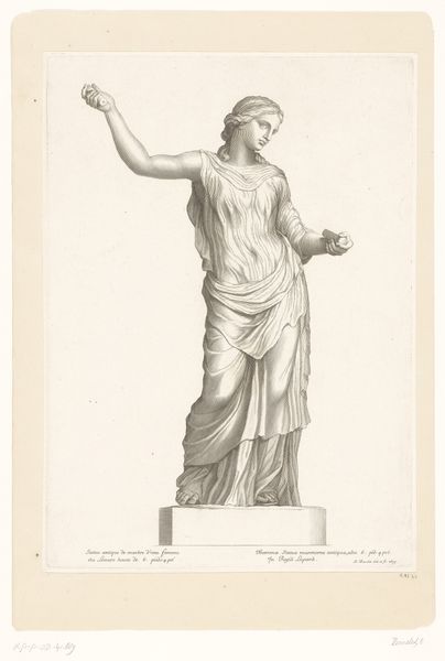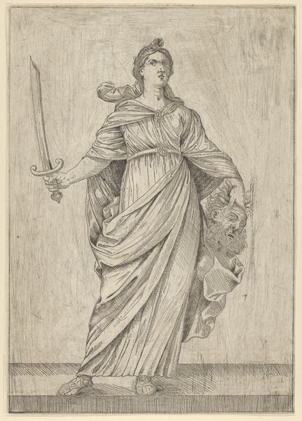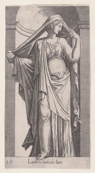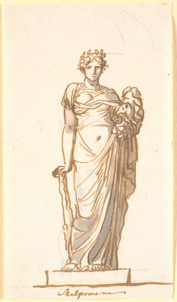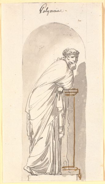 Nicolai Abildgaard made this drawing of Calliope, the muse of epic poetry, using pencil and grey wash. Here, the artist wasn't carving marble like an ancient sculptor, but instead used readily available materials. The pencil lines give a sense of the underdrawing, the foundation upon which the image is built. The grey wash adds depth and volume, mimicking the play of light on a three-dimensional sculpture. Notice how Abildgaard uses the wash to create shadows within the niche where Calliope stands, giving her a sense of presence and weight. But beyond mere imitation, Abildgaard's choice of drawing allows for a looseness and expressiveness not possible in stone. He captures the essence of classical sculpture while imbuing it with his own artistic sensibility. It is a reminder that materials and processes shape not only the appearance of art but also its meaning.