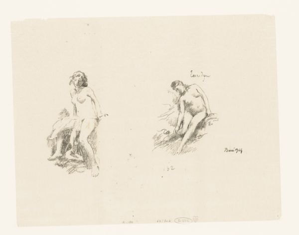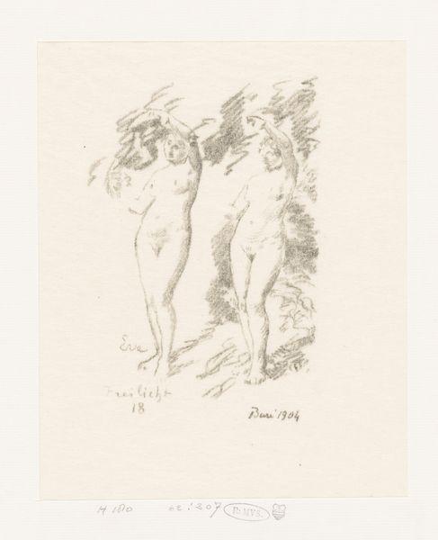 Henri Fantin-Latour created this sketch of six nude women, including Eve, likely in the late 19th century. Fantin-Latour’s artistic milieu was a 19th-century French society where academic tradition coexisted with burgeoning avant-garde movements. Fantin-Latour created idealized and allegorical representations of women, often drawing from mythology and biblical narratives, like the figure of Eve here. Representations of women in art history, especially nudes, are often viewed through the lens of the male gaze. Fantin-Latour and his contemporaries participated in the construction of female identity through the art they made, frequently showing them as objects of beauty and desire. Here, Fantin-Latour's figures exist as studies, lacking a singular narrative. The artist wrestles with how to represent women at a time when women were fighting for greater autonomy and recognition. This piece reveals a moment of tension between traditional representations and the stirrings of a new cultural landscape.