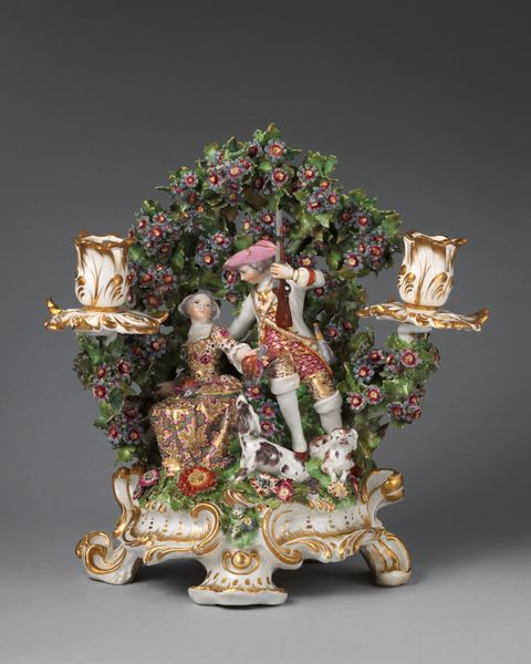 This porcelain candelabrum was crafted by the Derby Porcelain Manufactory in the late 18th century. The dog, a symbol of fidelity, sits faithfully beside the reclining figure, embodying themes of loyalty and companionship. The dog motif is not new; we find canine companions in ancient Roman mosaics, often guarding thresholds. Consider, too, depictions of dogs at the feet of medieval effigies of knights, symbolizing their unwavering fealty. Yet, here, the dog's presence takes on a different tenor, nestled within the intimate setting of a domestic scene. This shift reflects a broader transformation in social values and the emerging cult of domesticity during the Enlightenment. It's as if the collective unconscious remembers the faithful dog, reshaping its significance across epochs. This image, laden with affect, resonates deeply, engaging us in an emotional echo that spans centuries. The symbol lives, transformed, yet eternally present.