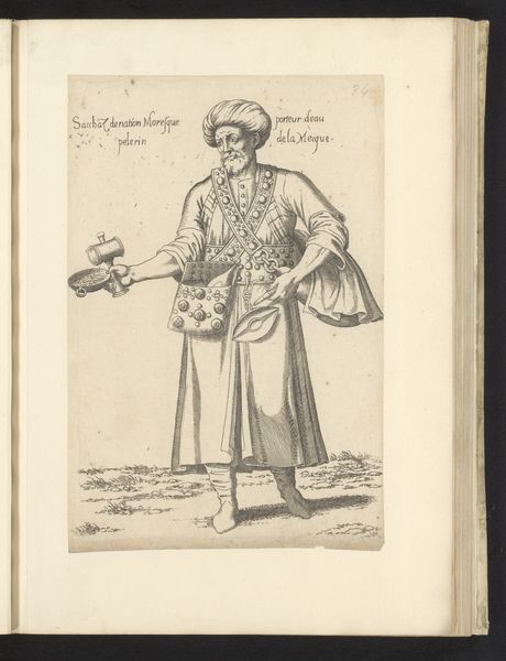 Curator: Here we have Léon Davent's engraving, "Emir," created between 1555 and 1568. It's quite striking, isn't it? Editor: My initial reaction is one of impressive stillness. The composition centers a solitary figure, almost suspended in the blank space. Curator: Davent made this engraving during a period of intense cultural exchange. These images, disseminated widely, helped shape European perceptions of the Ottoman world. We need to be cautious about viewing this image outside of its specific context in shaping and reflecting European attitudes and fantasies toward the Ottoman Empire. Editor: I see your point about the complexities of cultural representation, but consider for a moment the exquisite detail achieved solely through line. The rendering of fabrics is wonderful, how the drapery creates soft highlights and shaded volume on what is essentially a two-dimensional surface. Curator: And let’s remember who the intended audience likely was— European nobility and the educated elite. This image provided them with a certain level of knowledge, of "insider" access, feeding into the era's obsession with classifying the world and solidifying their own positions. The 'Emir' becomes almost a specimen, doesn’t he? Editor: He certainly stands more like a sculpture, the precision and almost mathematical rendering gives him solidity that balances the fine lines and patterns. The turban especially sits like an independent structure. Curator: Exactly. It's this carefully constructed visual language that reinforced the existing power dynamics. Remember, knowledge and representation were key instruments in constructing cultural and political dominance. The print becomes another way to solidify identity. Editor: The balance between meticulous execution and subtle emotive rendering has an impact for both historic record, and aesthetic analysis. Thank you for sharing insights on "Emir" and it’s European historical contexts! Curator: Absolutely. It’s crucial to always be aware of the inherent biases and complexities embedded within such historical representations.