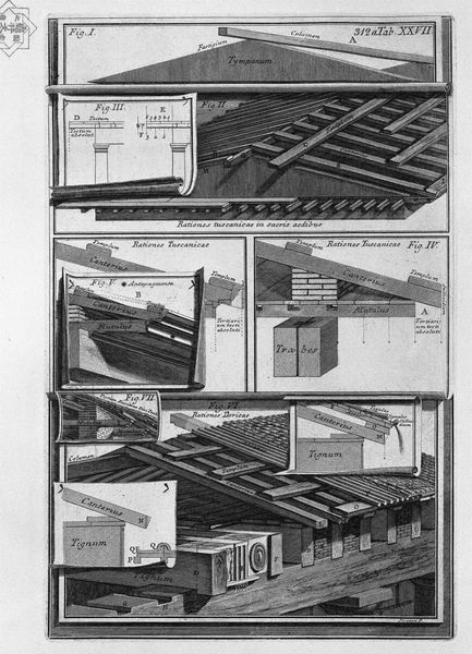This engraving by Giovanni Battista Piranesi captures details from the Castello dell’Acqua Giulia. Inscriptions such as "IN RIVO" mark the stones, hinting at the structure's vital role in conveying water, a life-giving element central to ancient Roman society. Notice the architectural moldings. These motifs, though seemingly simple, echo across epochs. The stepped patterns and geometric forms are not merely decorative; they speak to a human desire for order and harmony. Similar patterns appear in ancient Egyptian temples, Renaissance cathedrals, and even modern skyscrapers. The symbolic language of architectural form has been passed down through history, shifting in meaning and adapting to new cultural contexts. This image engages viewers on a deep, subconscious level by tapping into our collective memory of past civilizations. The arrangement may convey intense feelings of structural integrity and strength. The past resurfaces, evolves, and takes on new meanings in different historical contexts.