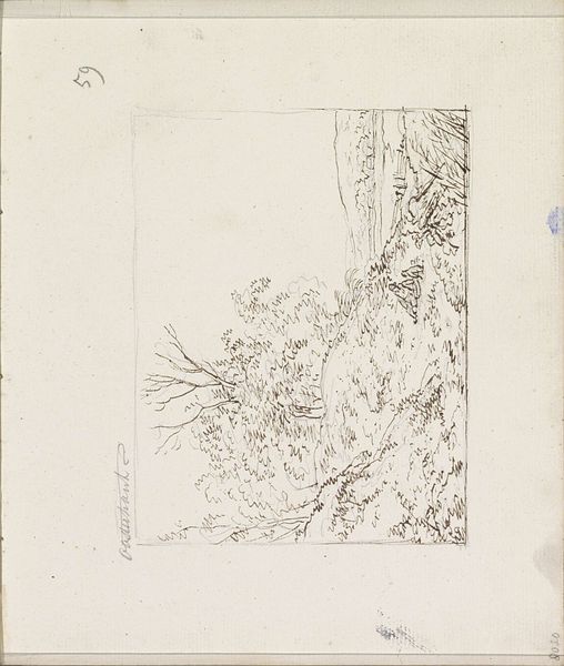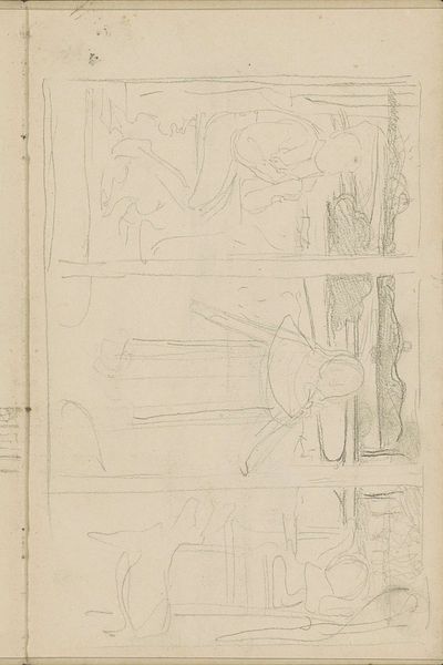 Editor: So, here we have "Bladeren van een plant," or "Leaves of a Plant," a pencil and paper drawing by Antoon Derkinderen, created sometime between 1889 and 1894. It feels almost ephemeral, unfinished. What catches your eye in this piece? Curator: Immediately, I'm drawn to the artist's deliberate use of the pencil. Look at the very visible marks, the sketch-like quality. It emphasizes the process of *making* over a polished final product, disrupting a clear distinction between drawing and finished art, foregrounding the labor involved in its production. Do you think it's intentionally rough? Editor: I hadn't considered that, but now I do. It feels more like a study, maybe, like preparatory work. Curator: Precisely! And considering Derkinderen's broader oeuvre, it raises interesting questions. Was this a necessary stage in his artistic labor? Also, think about the paper itself. It’s not just a surface; it's a manufactured commodity. Where was it sourced? How readily available was it to an artist like Derkinderen? These are material considerations which have been historically undervalued, in my opinion. Editor: So you’re saying understanding the materials and their context adds another layer of interpretation? Curator: Absolutely. We can consider the very real economic conditions of late 19th-century artistic practice. For example, How the drawing becomes something almost documentary rather than illustrative. Editor: That’s a fascinating perspective. It really shifts the focus from the image to the means of its creation. Thanks, I never would have noticed that! Curator: Glad to point you in a fruitful direction. Considering material concerns reveals often invisible forces at work in all forms of art.