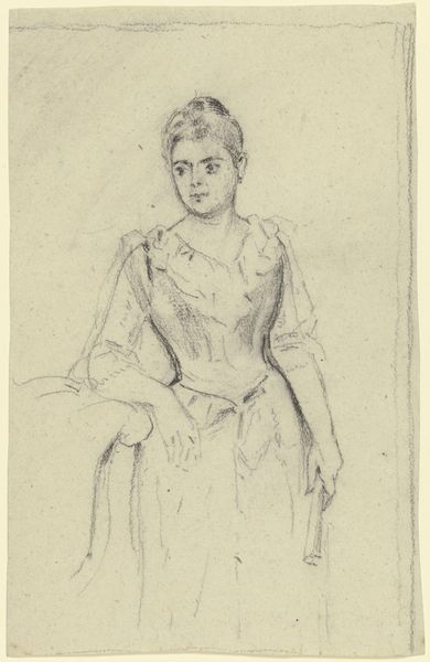 This is Peter Ilsted's etching, "Portrait of my Wife," crafted around 1899. The composition is immediately striking for its intimate scale and delicate use of line. The artist's wife is depicted in a moment of quiet repose, her head resting on her hands. Ilsted's technique is meticulous. Observe how he uses closely hatched lines to build up tone and shadow, creating a soft, almost dreamlike quality. The texture of the paper is integral to the work, adding depth and a tactile dimension. The artist was part of the Danish Golden Age, a period marked by an interest in realism and an intense focus on domestic life. Yet, Ilsted’s approach transcends mere representation. The geometric structure, the strategic use of blank space, and the way light falls across the figure, all suggest a deeper engagement with the formal possibilities of etching. This elevation of technique challenges our perception of portraiture, suggesting a level of meaning beyond the purely representational. Ultimately, it encourages ongoing interpretation.