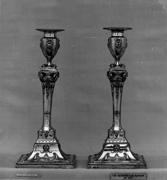 These are a pair of Neoclassical silver candlesticks by John Winter and Co. In order to understand these candlesticks we must situate them within the social rituals of the time. Candlesticks such as these were critical to illuminating the social spaces of the upper classes, who were the primary consumers and arbiters of taste. Notice the symmetry of the design, the fluted columns, and the swag motifs – all visual cues that signified wealth and social standing. These design elements, borrowed from ancient Greece and Rome, were a way for the upper classes to align themselves with the perceived virtues and order of those societies. However, light and power went hand in hand during this era. The soft glow of candlelight, rendered with pieces like this, was not merely about aesthetics; it was also about creating atmospheres of exclusivity and privilege.
