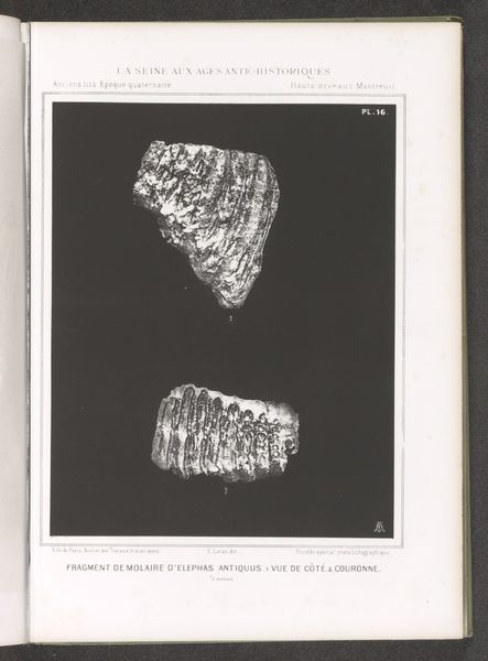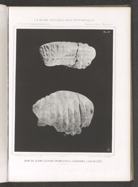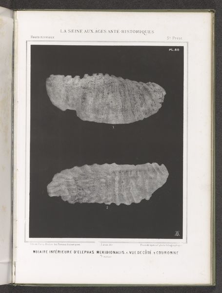 This print presents two views of an ancient elephant molar. The tooth, a powerful symbol of strength and longevity, is depicted with meticulous detail, its ridges and contours rendered starkly against the dark background. Consider how the visual language of this image mirrors ancient depictions of mythical creatures. The tooth's massive form evokes the bones of giants and dragons, motifs recurring in folklore across cultures. Think of the Cyclops, whose single eye might spring from misinterpretations of elephant skulls found in antiquity. The fossil becomes a potent symbol, connecting us to deep time and stirring primal fears and awe. It serves as a reminder that even the mightiest creatures are subject to the relentless cycle of creation and destruction. This tooth is not merely a relic; it is a key that unlocks our collective memory.