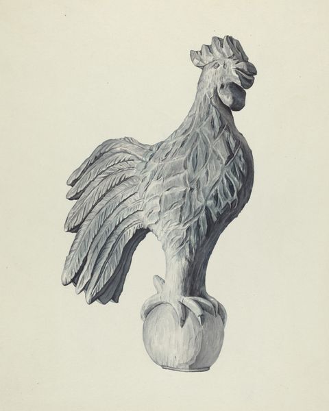 Lucille Chabot painted this ‘Rooster Weather Vane’ with watercolor, capturing the essence of folk art. Chabot's delicate strokes bring out the rooster’s form and texture. The washes of colour create depth, almost as if the rooster could crow out. Look at how the layers build up, especially in the tail, giving it a sense of dimension. You can see the touch of the hand in the subtle variations of tone and the way the colors blend and bleed into each other. The use of watercolor gives the piece a certain lightness, a kind of transparency that mirrors the ephemeral nature of weather itself. Maybe the browns and greys, muted tones, evoke the feeling of a cloudy day, when everything feels a little softer, a little more diffused. The watercolor’s translucency captures the way weather vanes themselves seem to point toward the ever-changing skies, their surfaces buffeted and worn by the elements. It brings to mind Marsden Hartley’s later works, where simple subjects are infused with a similar sense of poignancy.