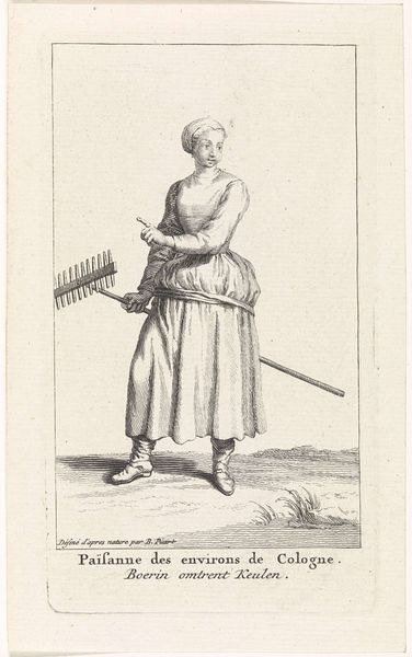 Bernard Picart created "Dienstmeid uit Koblenz, bezem in de hand" - or "Maid from Koblenz, broom in hand" - as an engraving. The artwork is a window into the lives of working-class women in 18th-century Europe. At the time, social roles were highly defined and often restrictive, especially for women. Here, Picart portrays a woman in her working attire, complete with a broom, which was a symbol of her daily labor and social standing. The maid's gaze away from us might suggest something about her identity and role in society. Is she lost in thought, dreaming of a life beyond her daily chores? Picart's work provides a glimpse into the intersection of gender and class, highlighting the often invisible labor that sustained households and societies. The emotional weight of the image resides in its quiet acknowledgement of a life lived in service. It invites us to reflect on the lives of those whose stories often go untold.