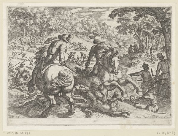 This print, "Hunting Porcupines with Nets," was made in the late 16th or early 17th century by Antonio Tempesta using etching, a printmaking technique dependent on chemistry and craft. In etching, a metal plate is coated with a waxy, acid-resistant substance called a ‘ground’. The artist then scratches an image into this ground, exposing the metal beneath. When the plate is submerged in acid, the exposed lines are ‘bitten,’ creating grooves. The deeper the bite, the more ink the groove will hold. After removing the ground, ink is applied to the plate, and the surface is wiped clean, leaving ink only in the etched lines. Finally, the plate is pressed onto paper, transferring the image. Think about the labor involved. Tempesta's mastery over this process highlights the skilled traditions of printmaking, and the way they can be used to depict other forms of labor, in this case hunting. The print makes us aware of these men's work, and the consumption and class that it allows. Paying attention to materials, making, and context helps us fully understand the meaning of this artwork.