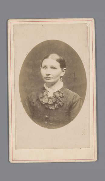 Editor: Here we have H. van der Zijl's "Portret van Trui Hendriks," a gelatin silver print from sometime between 1886 and 1908. It's quite formal and almost feels like it's trying to tell me something about the sitter's life. What aspects of the portrait do you find most revealing about the subject's world? Curator: That formality you sense speaks volumes, doesn’t it? Think about the rise of photography during this period. It democratized portraiture, offering access to more social classes than painting ever did. This portrait, however, still retains a certain level of staging, almost a performance. Do you notice how her gaze confronts us directly? It’s assertive, but is it truly empowering or simply reflecting the constrained roles available to women at the time? The sitter's life intersected class, gender, and societal expectations. Editor: I see what you mean. Her clothing and jewelry indicate a certain social standing, but there's a reserve in her expression. Curator: Exactly! It begs the question: To what extent was Trui Hendriks able to self-define? How much control did she have over her own image and representation within a patriarchal society? This portrait becomes a site of contestation between visibility and agency. Editor: So, we are really looking at a story about the push and pull between personal expression and social constraint in a particular moment in time. I'll definitely think differently about portraiture now! Curator: Precisely. By exploring the social and historical forces shaping her life, the work speaks not just about Trui Hendriks but about broader struggles around self-determination that are relevant even now.