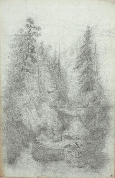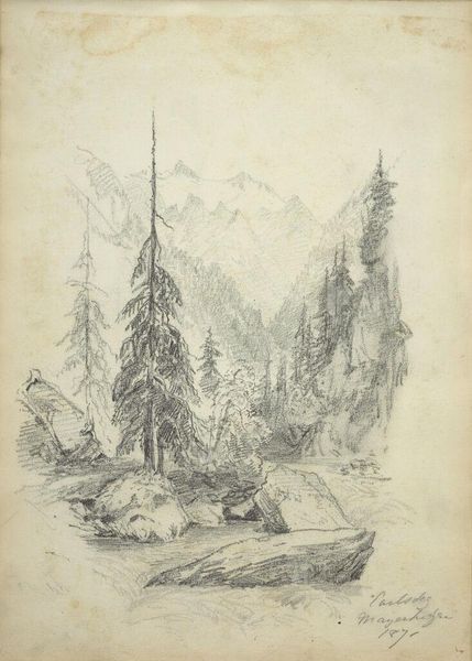 Editor: This is John Singer Sargent's pencil sketch, "Mountain Village with Stream, Oetzthal." It feels unfinished, almost ethereal. What visual stories do you see in the bare outlines of the mountains? Curator: The sketch evokes a sense of primordial power. Mountains, throughout cultures, are often symbolic of aspiration, challenge, and the sublime. Notice how the village nestles at the base, suggesting humanity's dependence on and integration within the natural world. Do you see how the stream might symbolize the flow of life and time? Editor: That's fascinating! I hadn't considered the symbolism of the stream. Curator: Sargent presents a balance between the vulnerability of existence and the strength of the natural world. Editor: I see that now. I am rethinking how landscape can be charged with symbolic meaning. Curator: Indeed, the cultural memory of landscape is deeply embedded within us all.