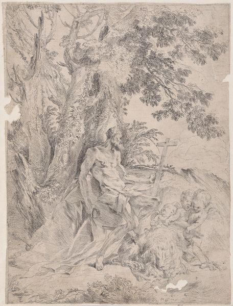 Friedrich Preller the Elder rendered this drawing, "Die rastende Diana am Rande eines Waldes," placing the goddess Diana at the edge of a forest. Preller, who lived through a period of significant social change, including the rise of nationalism, found himself working in a society that was deeply involved in reevaluating its cultural identity and its relationship to both the classical past and the natural world. It’s hard not to see the influence of these themes in this drawing. Diana, the Roman goddess of the hunt, moon, and nature, is typically portrayed as an active huntress, but here, she’s resting. This choice humanizes her, depicting her in a moment of vulnerability and repose. The landscape itself becomes a character, embodying both the beauty and untamed aspects of nature. The drawing invites us to consider the complex relationships between humans, gods, and the environment and the intersection of mythology, identity, and landscape within the cultural context of 19th-century Europe.