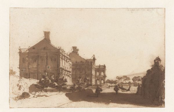 Curator: This gelatin silver print, taken between 1905 and 1907, is titled "Adults and Children by Railroad Tracks in Front of a House on Bergweg in Rotterdam" by Folkert Idzes de Jong. Editor: It’s captivating. The muted tones evoke a strong sense of place and time, that industrializing era. It seems like the figures are caught in this strange limbo between progress and the everyday, doesn’t it? Curator: Yes, the image is so evocative. De Jong was actively documenting Rotterdam, specifically interested in recording scenes from everyday life amidst rapid urbanization. The inclusion of both children and adults gathered by the railroad tracks creates this wonderful tension. It almost seems as if the tracks themselves are dividing two distinct spheres. Editor: Exactly! Look at those figures: they’re standing right on the tracks, literally on the edge. It makes you think about class and community at that specific moment in Rotterdam’s evolution. Who benefits from this “progress” and who is displaced or left behind? There is a quiet disquiet simmering in the photograph. Curator: What I find interesting is the formal element in play. Notice how the house provides an ornate, almost neoclassical backdrop? Juxtapose that with the industrial grit of the tracks and the raw earth in the foreground. It sets up a visual commentary on the city itself: beauty intertwined with harsh realities. This tension between the elegant and the industrial would have been especially poignant in early 20th century Rotterdam. Editor: I agree. Also, I see a connection to contemporary ideas around surveillance and public space. Photography during this era often framed urban inhabitants as subjects to be observed and managed. Here we might ask who holds the power and perspective within this visual field? The photographer? Or perhaps those individuals daring to occupy the track? Curator: Well, considering photography's developing role during the time, de Jong's composition might be both reflective and unintentionally representative of society's views. Perhaps a critical approach towards art production during moments of immense cultural changes would prove revealing. Editor: Agreed. This image offers not only a portrait of Rotterdam but also encourages vital inquiries related to societal structure during a turning point of human society.